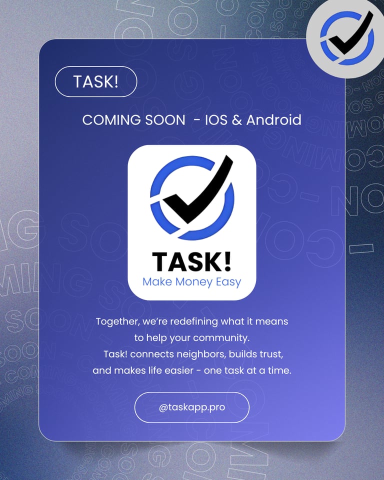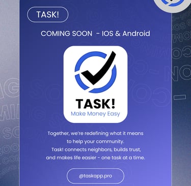 TASK! is a new kind of app that connects people who need help with those ready to lend a hand. Whether you want to get a job done or earn extra income offering your skills, TASK! makes it quick, easy, and affordable to connect with your community.